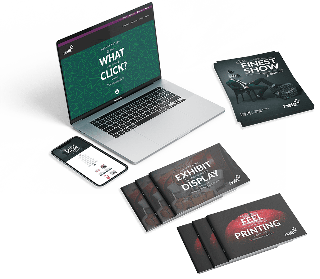 As a Nettl Partner or Nettl Studio you’ll have access to a full suite of marketing to help you sell. Online and offline. E-shots and brochures. Instore, direct mail, social media campaigns, blogs and landing pages.